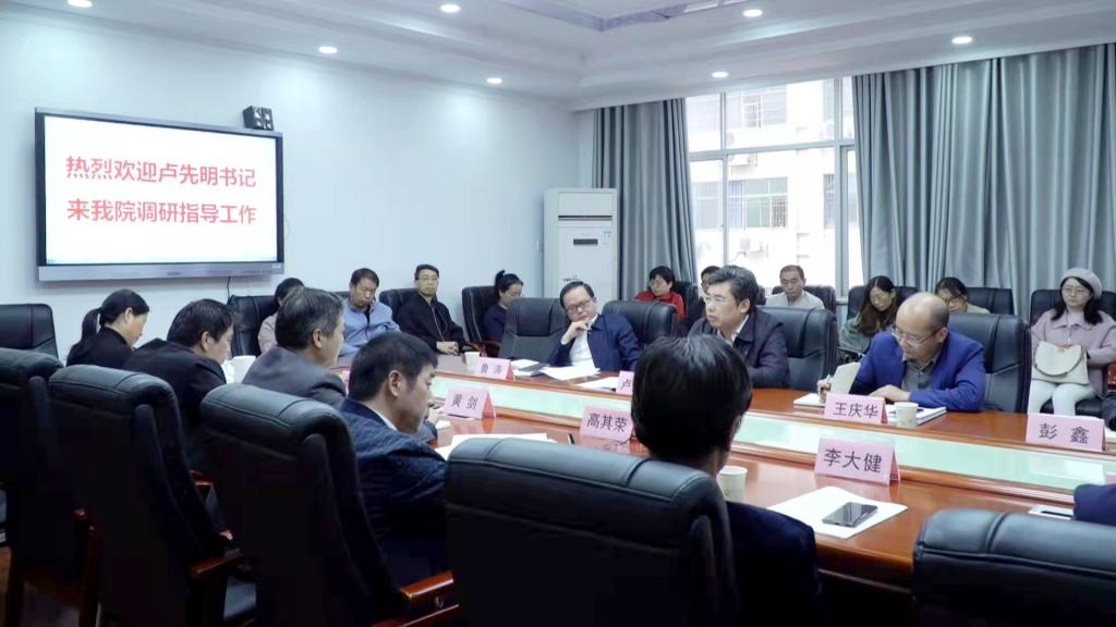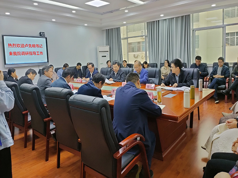 院长高其荣向调研组一行汇报了近年来学院师资队伍建设、教学科研工作等方面的情况,同时也客观分析了学院在思政课教学、学科建设、学位点建设方面存在的问题,并就省委巡视组巡视中指出的相关问题提出了整改思路和举措。