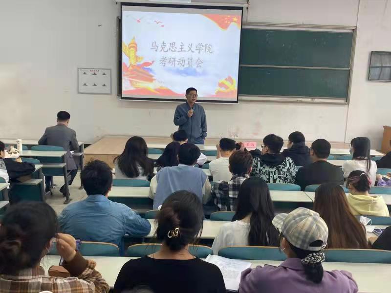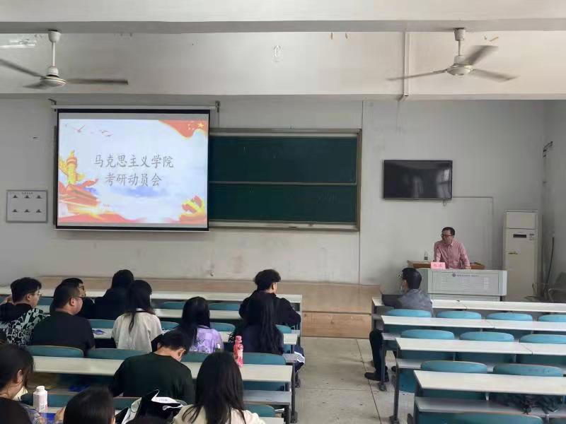 5月16日上午,马克思主义学院在9T1教室召开考研动员大会,院长鲁涛、副院长刘小华、郑立新、辅导员杨宗圆出席动员会,19级全体同学及20级部分同学参加会议。