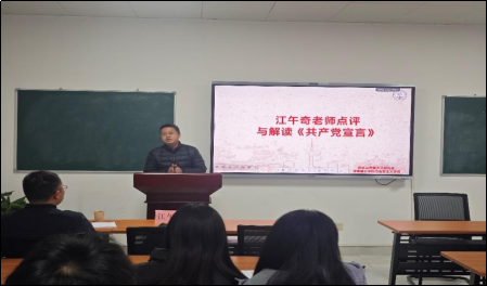 为推动马克思主义经典著作走进青年,强化大学生理论武装与思想引领,青年马克思主义研究会于2025年12月16日在9212成功举行《共产党宣言》读书分享会,马克思主义学院党委副书记张晋超,江午奇博士参加活动。