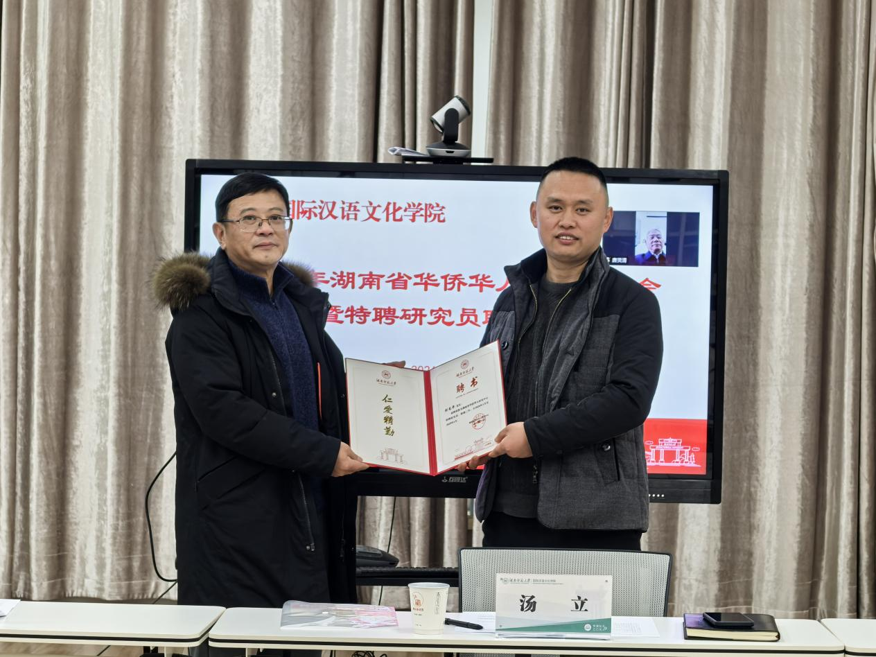 1月22日,2026年湖南省华侨华人研究座谈会暨特聘研究员聘任仪式在湖南师范大学田家炳教育书院举行。我院刘龙华博士受聘为该研究中心特聘研究员。