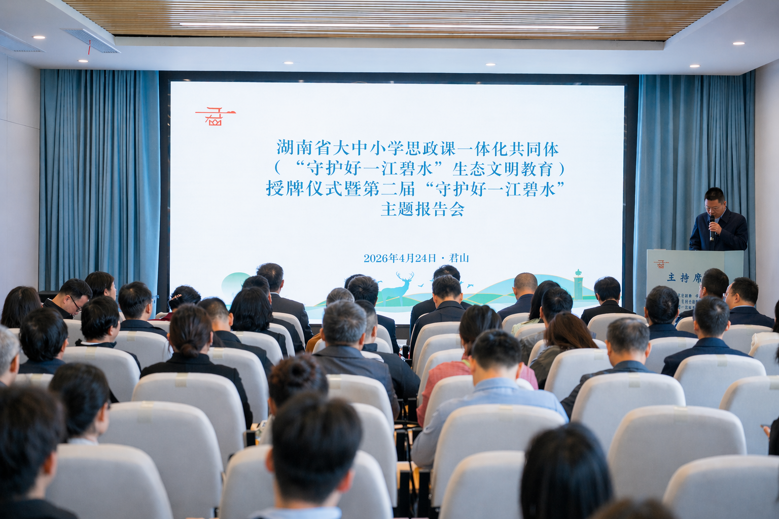 湖南省大中小学思政课一体化共同体授牌仪式暨第二届“守护好一江碧水”主题报告现场