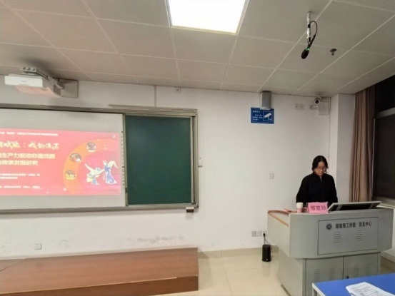 随后,袁咪雅以非遗戏剧发展为切入点,带领同学们欣赏了往届竞赛获奖佳作,深入分析了非遗戏剧的传承困境与破解路径。最后,两位主讲人鼓励新生积极报名参与各类双创竞赛,在实践中不断提升创新创业能力。