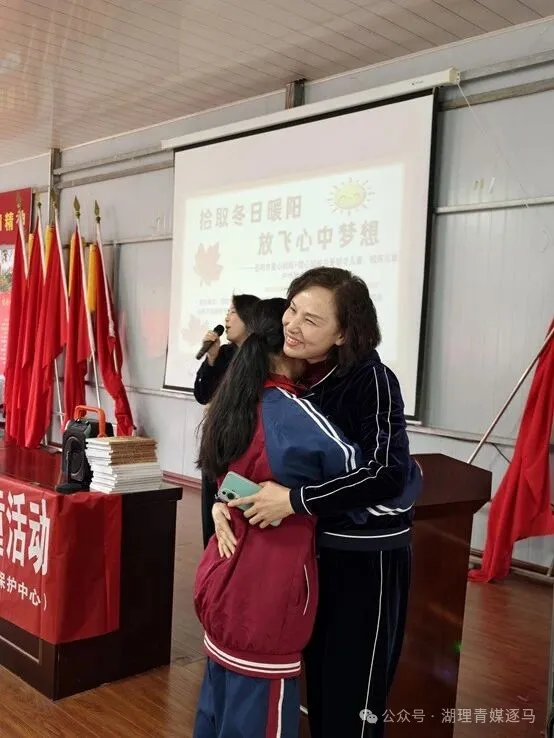 爱心分享环节满是温情,“感恩”与“牵挂”串联起双向治愈时光。“爱心妈妈”王湘婷帮扶的孩子登台分享书信后,径直扑进她怀中紧紧相拥。曾内向孤僻的男孩,在日复一日的呵护下蜕变为阳光懂事的少年,这份成长蜕变打动全场,不少人热泪盈眶。“爱心妈妈”胡春莲身旁,腼腆的小女孩亲昵地依偎着,小手攥紧衣角,满眼是对“妈妈”的信赖与安心,画面格外暖心。